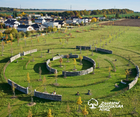 Na okraji Dolních Břežan vznikl v roce 2016 nový typ veřejného prostoru – přírodní hřbitov komponovaný jako krajinný park, navržený Zdeňkem Sendlerem a Radkou Táborovou, realizovaný firmou Zahradní architektura Kurz. Projekt, jenž navazuje na hlubokou historickou paměť místa – od keltského osídlení po křesťanskou tradici –, proměnil bývalé rumiště v promyšlený duchovní a ekologický celek.